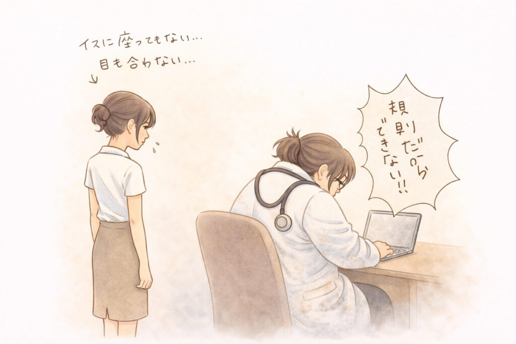 主治医から許可をもらっている旨など伝えましたが、こちらと目も合わせず会話にもなりませんでした。