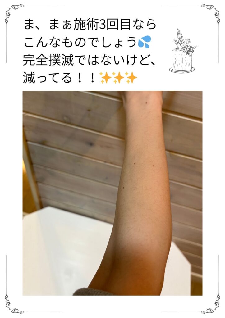 脱毛施術後①腕(3回済)※施術後6ケ月以上経過後の写真(剃毛なし)